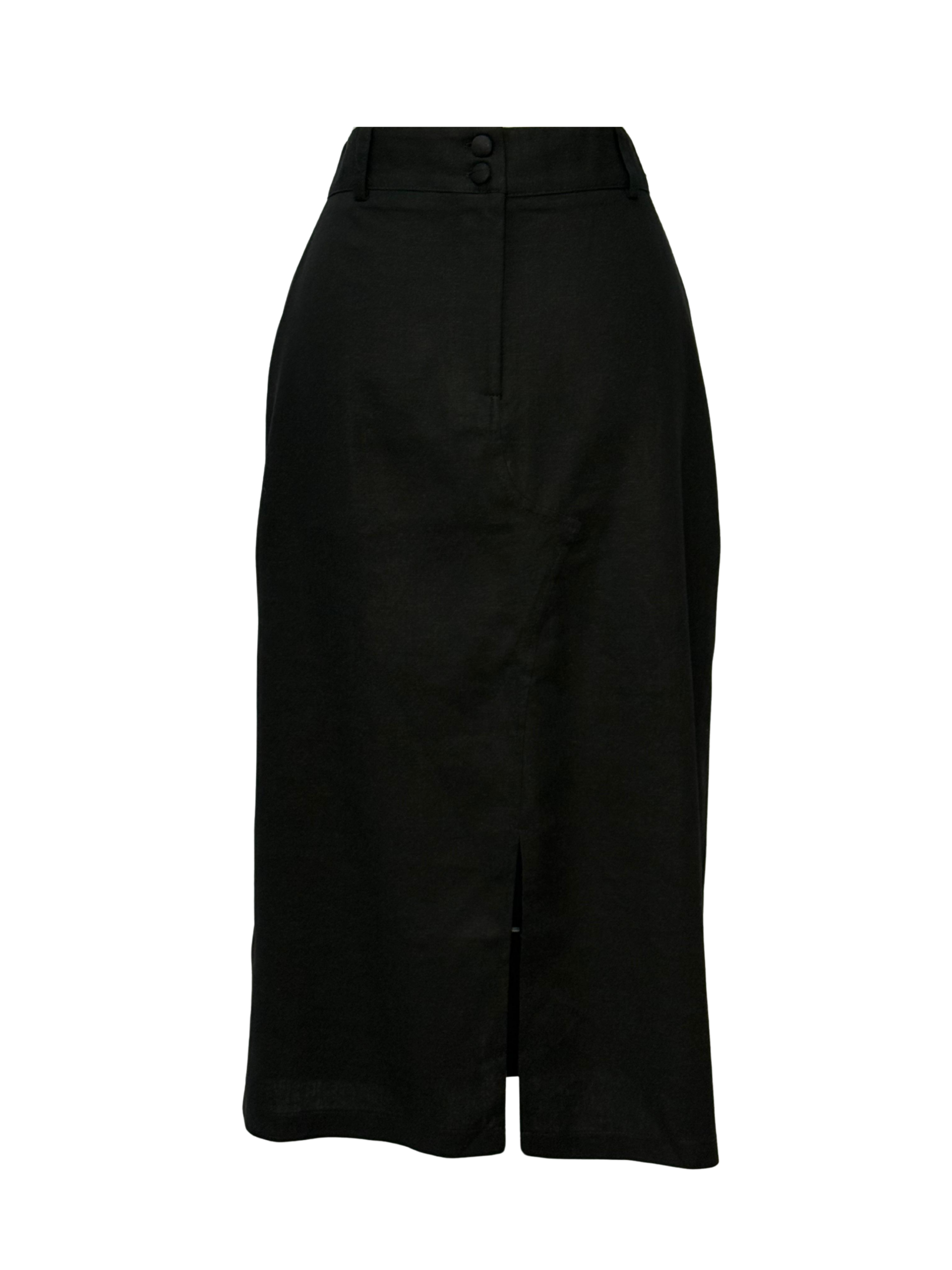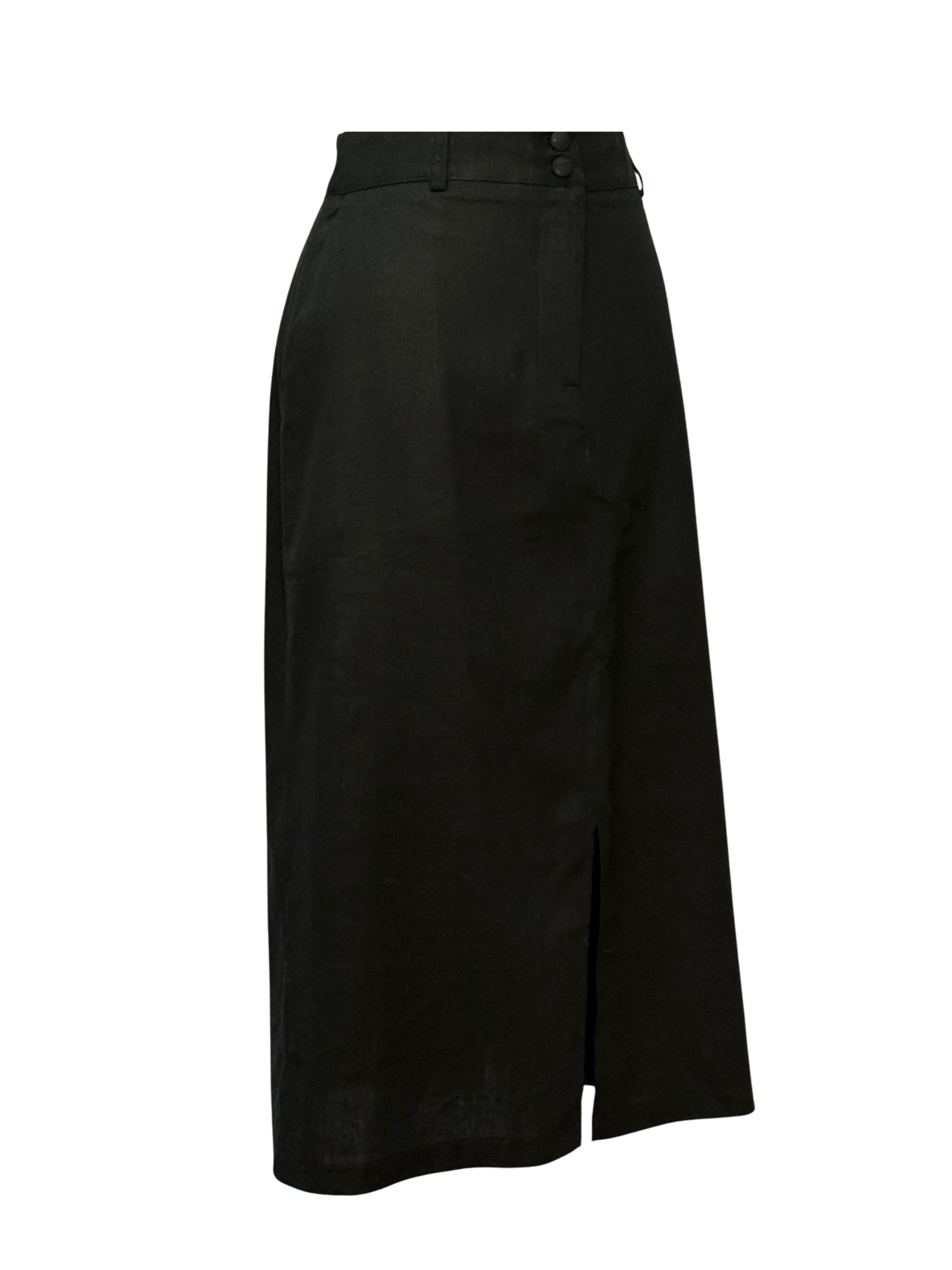 Saia Midi de Linho com Fenda – Preta