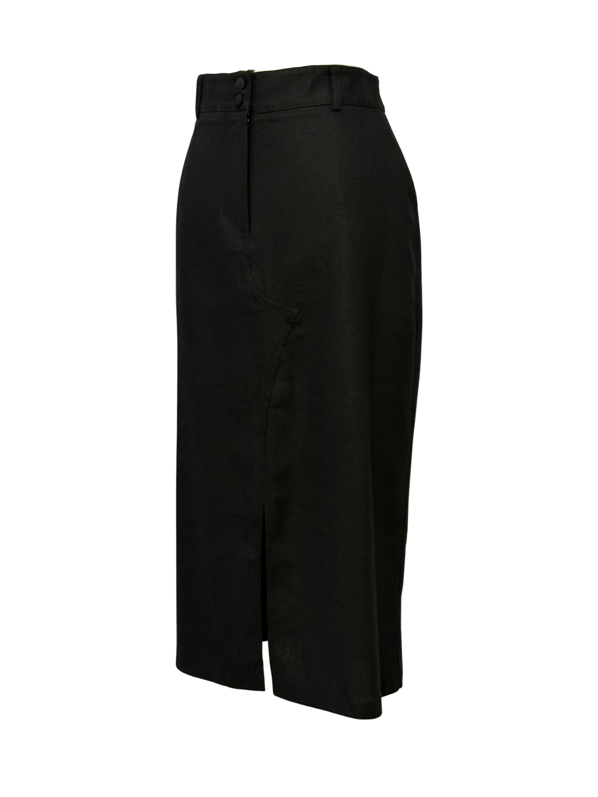 SAIA MIDI DE LINHO COM BOTAO E FENDA – PRETO